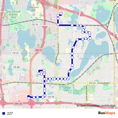See why over 2 million users trust and consider busmaps.com as the best public transport website. busmaps gives you Saint Paul Buses suggested routes, real-time bus tracker, line route maps in Saint Paul, and helps to find the closest 227 bus stops near you. No internet available? Download an offline PDF map and bus schedule for the 227 bus to take on your trip.