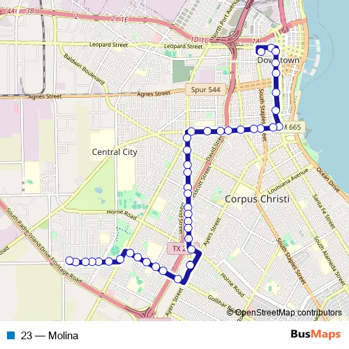 See why over 2 million users trust and consider busmaps.com as the best public transport website. busmaps gives you Corpus Christi Buses suggested routes, real-time bus tracker, line route maps in Corpus Christi, and helps to find the closest 23 bus stops near you. No internet available? Download an offline PDF map and bus schedule for the 23 bus to take on your trip.