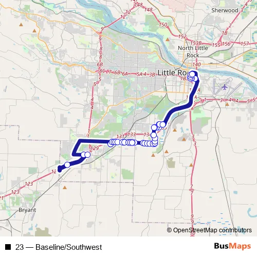 See why over 2 million users trust and consider busmaps.com as the best public transport website. busmaps gives you Little Rock Buses suggested routes, real-time bus tracker, line route maps in Little Rock, and helps to find the closest 23 bus stops near you. No internet available? Download an offline PDF map and bus schedule for the 23 bus to take on your trip.