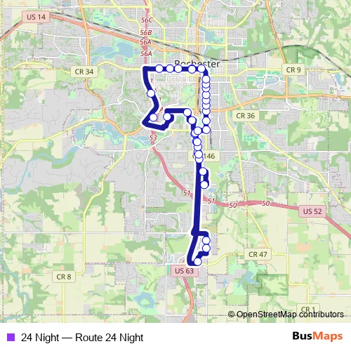 See why over 2 million users trust and consider busmaps.com as the best public transport website. busmaps gives you Rochester Buses suggested routes, real-time bus tracker, line route maps in Rochester, and helps to find the closest 24 Night bus stops near you. No internet available? Download an offline PDF map and bus schedule for the 24 Night bus to take on your trip.