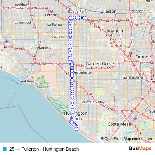 Click here to view the nearest 25 - Fullerton - Huntington Beach bus stop.