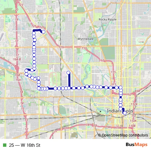 See why over 2 million users trust and consider busmaps.com as the best public transport website. busmaps gives you Indianapolis Buses suggested routes, real-time bus tracker, line route maps in Indianapolis, and helps to find the closest 25 bus stops near you. No internet available? Download an offline PDF map and bus schedule for the 25 bus to take on your trip.