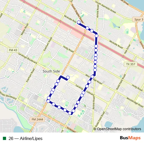 Bus 26 - Airline/Lipes: Full Schedule in Corpus Christi