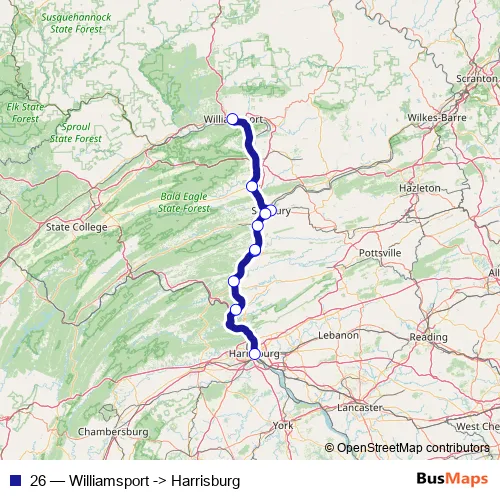 Click here to view the nearest 26 - Williamsport -> Harrisburg bus stop.