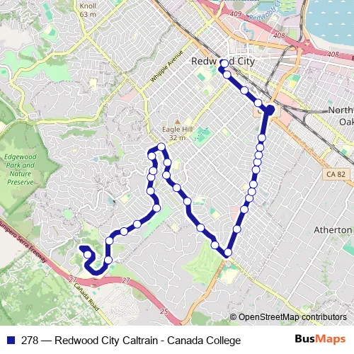 Click here to view the nearest 278 - Redwood City Caltrain - Canada College bus stop.