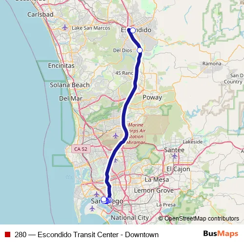 Bus 280 - Escondido Transit Center - Downtown: Full Schedule in San Diego