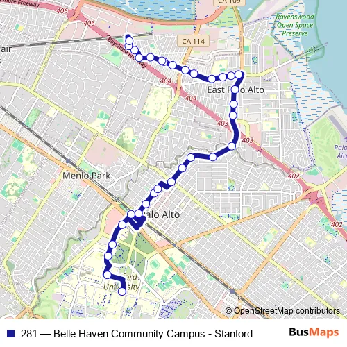 Bus 281 - Belle Haven Community Campus - Stanford: Full Schedule in Redwood City