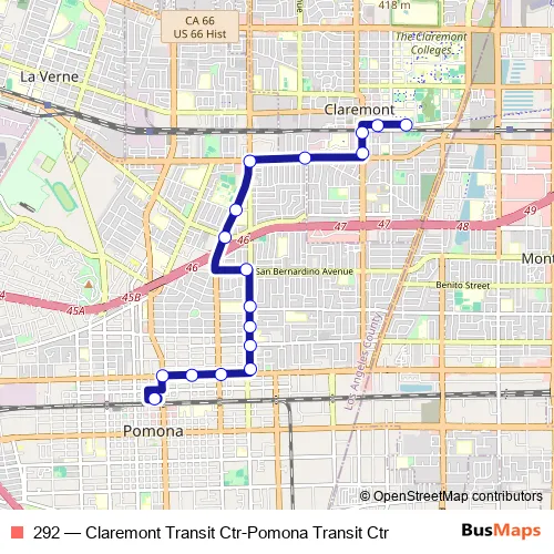 Click here to view the nearest 292 - Claremont Transit Ctr-Pomona Transit Ctr bus stop.