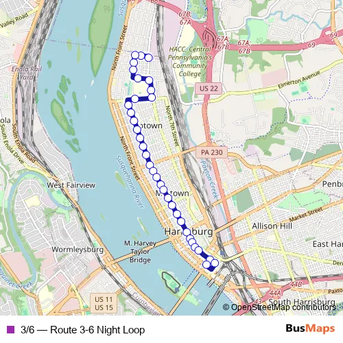 Bus 3/6 - Route 3-6 Night Loop Schedule in Harrisburg