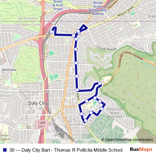 Click here to view the nearest 30 - Daly City Bart - Thomas R Pollicita Middle School bus stop.