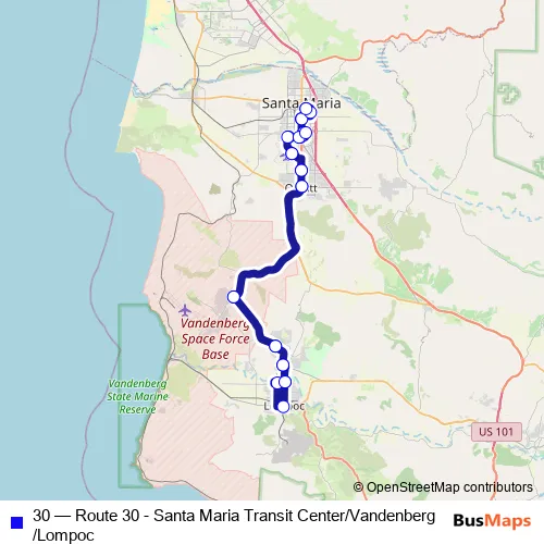 Bus 30 - Route 30 - Santa Maria Transit Center/Vandenberg/Lompoc Schedule in Santa Maria