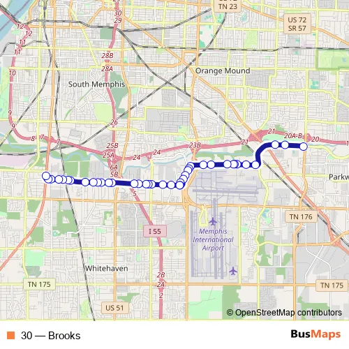 See why over 2 million users trust and consider busmaps.com as the best public transport website. busmaps gives you Memphis Buses suggested routes, real-time bus tracker, line route maps in Memphis, and helps to find the closest 30 bus stops near you. No internet available? Download an offline PDF map and bus schedule for the 30 bus to take on your trip.