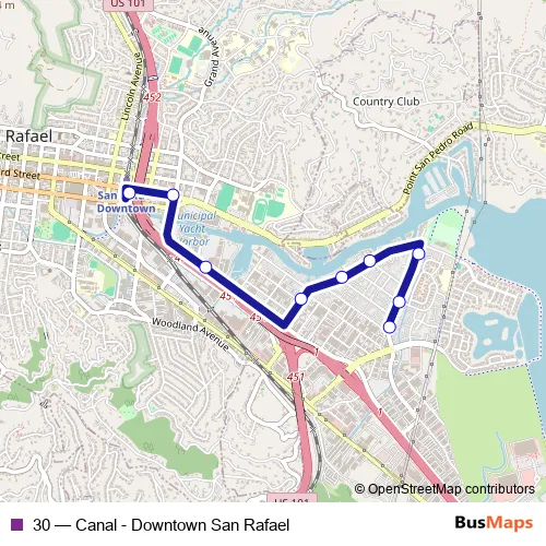 See why over 2 million users trust and consider busmaps.com as the best public transport website. busmaps gives you San Rafael Buses suggested routes, real-time bus tracker, line route maps in San Rafael, and helps to find the closest 30 bus stops near you. No internet available? Download an offline PDF map and bus schedule for the 30 bus to take on your trip.