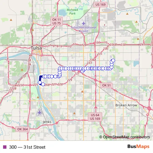 See why over 2 million users trust and consider busmaps.com as the best public transport website. busmaps gives you Tulsa Buses suggested routes, real-time bus tracker, line route maps in Tulsa, and helps to find the closest 300 bus stops near you. No internet available? Download an offline PDF map and bus schedule for the 300 bus to take on your trip.