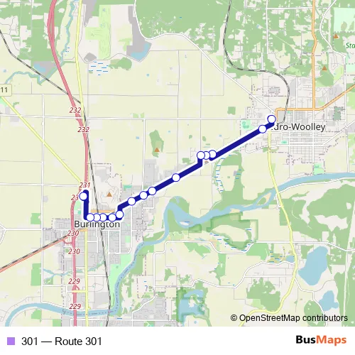The first stop of the 301 bus route is Sedro Woolley Park and Ride and the last stop is Chuckanut P&R (Park & Ride). 301 (Route 301) is operational during everyday.