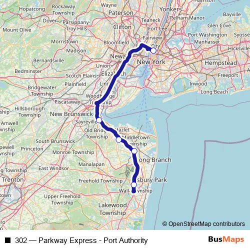 Bus 302 - Parkway Express - Port Authority in Freehold: Stops & Timetable