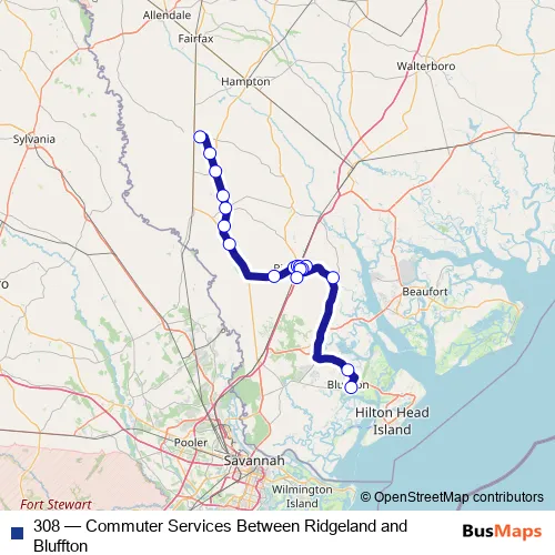 Click here to view the nearest 308 - Commuter Services Between Ridgeland and Bluffton bus stop.