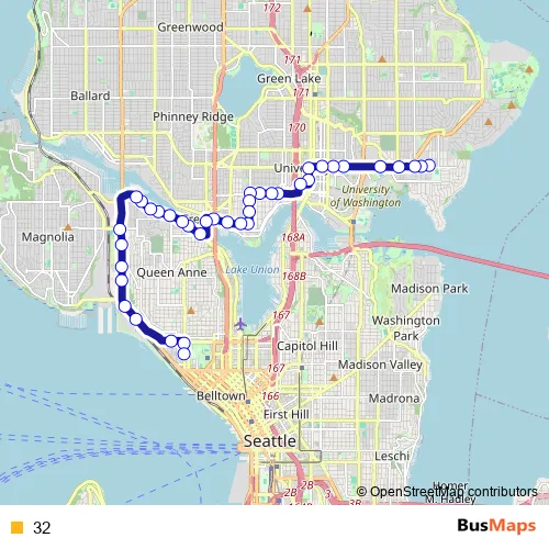 See why over 2 million users trust and consider busmaps.com as the best public transport website. busmaps gives you Seattle Buses suggested routes, real-time bus tracker, line route maps in Seattle, and helps to find the closest 32 bus stops near you. No internet available? Download an offline PDF map and bus schedule for the 32 bus to take on your trip.