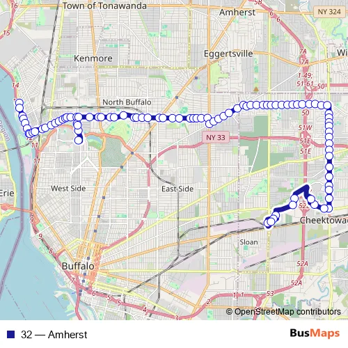 Bus 32 - Amherst in Buffalo: Stops & Timetable