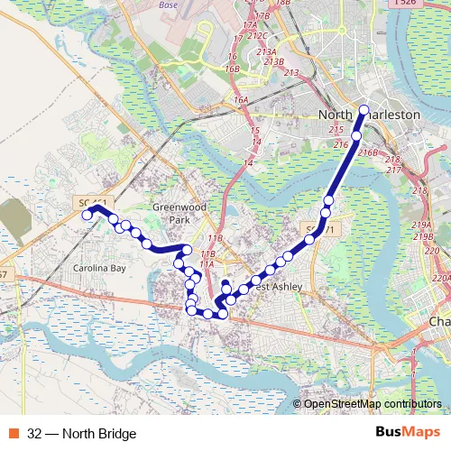 See why over 2 million users trust and consider busmaps.com as the best public transport website. busmaps gives you Charleston Buses suggested routes, real-time bus tracker, line route maps in Charleston, and helps to find the closest 32 bus stops near you. No internet available? Download an offline PDF map and bus schedule for the 32 bus to take on your trip.