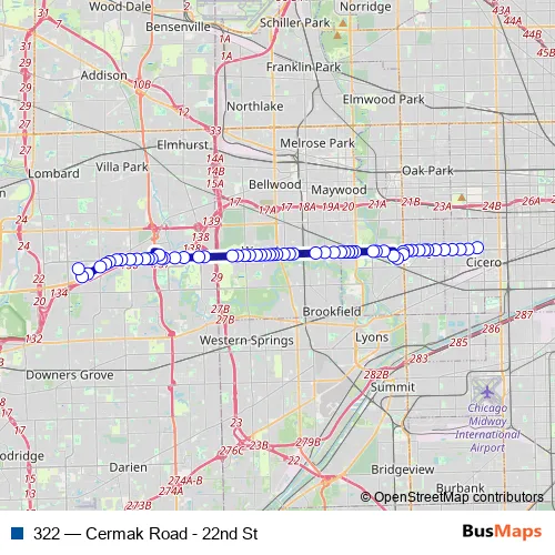 Bus 322 - Cermak Road - 22nd St in Wheaton: Stops & Timetable