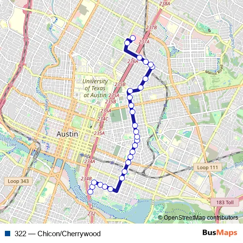 See why over 2 million users trust and consider busmaps.com as the best public transport website. busmaps gives you Austin Buses suggested routes, real-time bus tracker, line route maps in Austin, and helps to find the closest 322 bus stops near you. No internet available? Download an offline PDF map and bus schedule for the 322 bus to take on your trip.