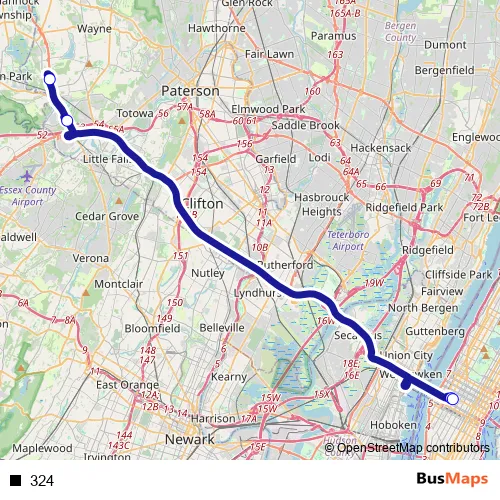 The first stop of the 324 bus route is Mothers Park & Ride RT 23 North and the last stop is Port Authority BUS Terminal. 324 is operational during on weekdays.