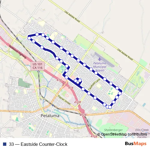 See why over 2 million users trust and consider busmaps.com as the best public transport website. busmaps gives you Petaluma Buses suggested routes, real-time bus tracker, line route maps in Petaluma, and helps to find the closest 33 bus stops near you. No internet available? Download an offline PDF map and bus schedule for the 33 bus to take on your trip.