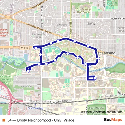Bus 34 - Brody Neighborhood - Univ. Village Schedule in Lansing