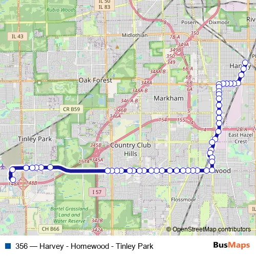 Click here to view the nearest 356 - Harvey - Homewood - Tinley Park bus stop.