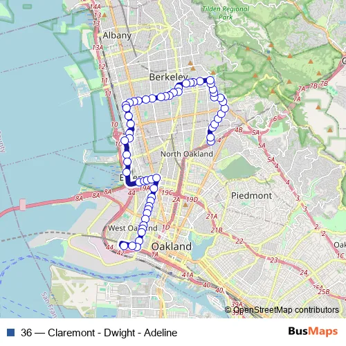 Bus 36 - Claremont - Dwight - Adeline in Oakland: Stops & Timetable