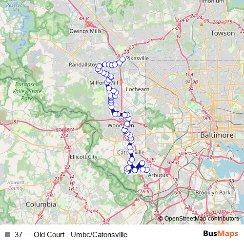 37 (Old Court - Umbc/Catonsville) Bus in Ellicott City