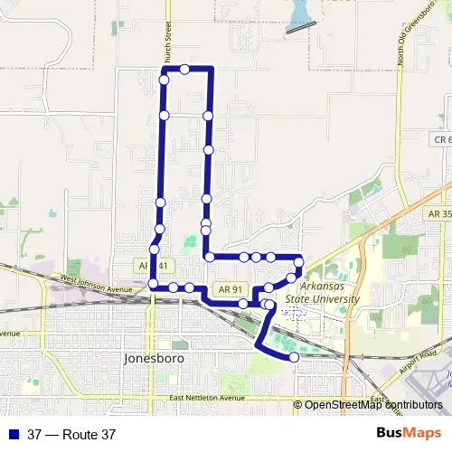 See why over 2 million users trust and consider busmaps.com as the best public transport website. busmaps gives you Jonesboro Buses suggested routes, real-time bus tracker, line route maps in Jonesboro, and helps to find the closest 37 bus stops near you. No internet available? Download an offline PDF map and bus schedule for the 37 bus to take on your trip.