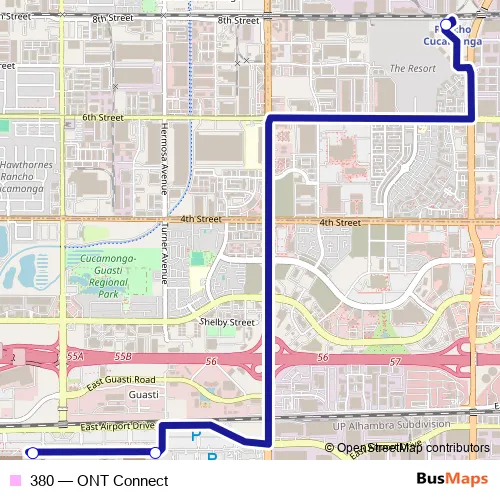 See why over 2 million users trust and consider busmaps.com as the best public transport website. busmaps gives you Rancho Cucamonga Buses suggested routes, real-time bus tracker, line route maps in Rancho Cucamonga, and helps to find the closest 380 bus stops near you. No internet available? Download an offline PDF map and bus schedule for the 380 bus to take on your trip.