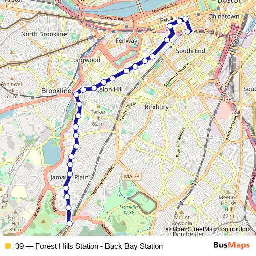 Bus 39 - Forest Hills Station - Back Bay Station Schedule in Boston