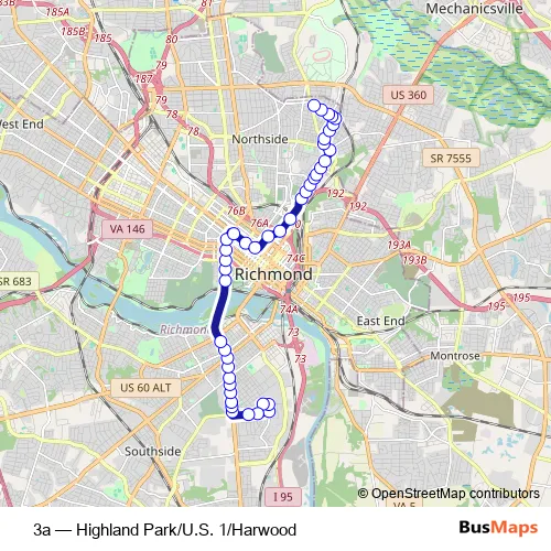 Bus 3a - Highland Park/U.S. 1/Harwood Schedule in Richmond