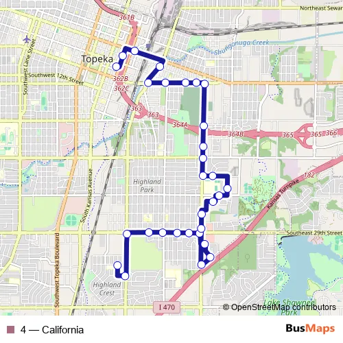 See why over 2 million users trust and consider busmaps.com as the best public transport website. busmaps gives you Topeka Buses suggested routes, real-time bus tracker, line route maps in Topeka, and helps to find the closest 4 bus stops near you. No internet available? Download an offline PDF map and bus schedule for the 4 bus to take on your trip.