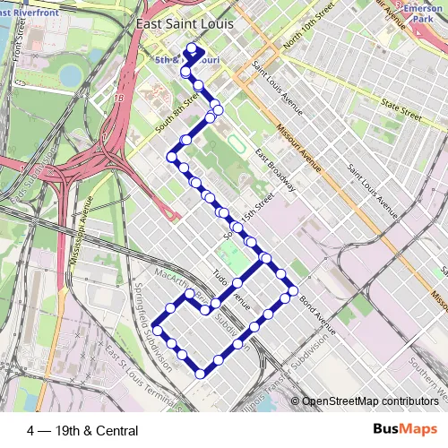 See why over 2 million users trust and consider busmaps.com as the best public transport website. busmaps gives you St. Louis Buses suggested routes, real-time bus tracker, line route maps in St. Louis, and helps to find the closest 4 bus stops near you. No internet available? Download an offline PDF map and bus schedule for the 4 bus to take on your trip.