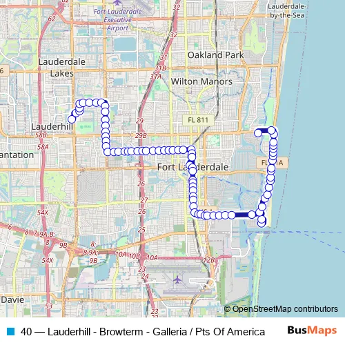 See why over 2 million users trust and consider busmaps.com as the best public transport website. busmaps gives you Fort Lauderdale Buses suggested routes, real-time bus tracker, line route maps in Fort Lauderdale, and helps to find the closest 40 bus stops near you. No internet available? Download an offline PDF map and bus schedule for the 40 bus to take on your trip.