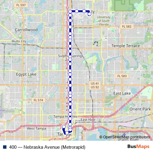 Bus 400 - Nebraska Avenue (Metrorapid): Full Schedule in Tampa