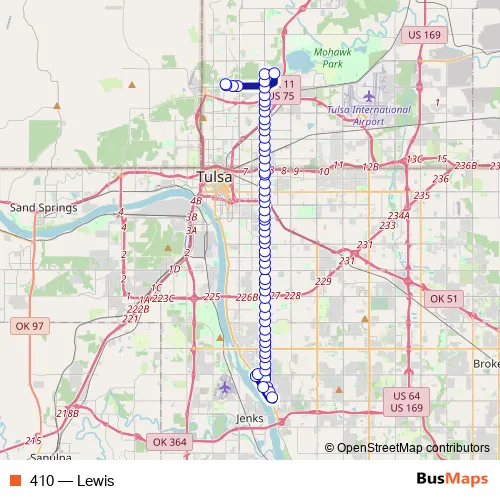 See why over 2 million users trust and consider busmaps.com as the best public transport website. busmaps gives you Tulsa Buses suggested routes, real-time bus tracker, line route maps in Tulsa, and helps to find the closest 410 bus stops near you. No internet available? Download an offline PDF map and bus schedule for the 410 bus to take on your trip.