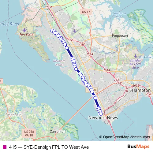 See why over 2 million users trust and consider busmaps.com as the best public transport website. busmaps gives you Newport News Buses suggested routes, real-time bus tracker, line route maps in Newport News, and helps to find the closest 415 bus stops near you. No internet available? Download an offline PDF map and bus schedule for the 415 bus to take on your trip.