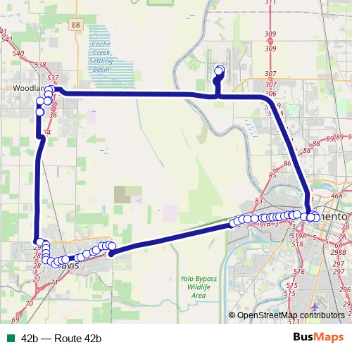See why over 2 million users trust and consider busmaps.com as the best public transport website. busmaps gives you Sacramento Buses suggested routes, real-time bus tracker, line route maps in Sacramento, and helps to find the closest 42b bus stops near you. No internet available? Download an offline PDF map and bus schedule for the 42b bus to take on your trip.