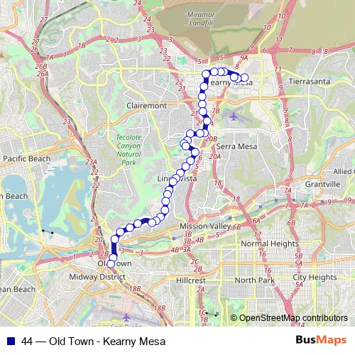Bus 44 - Old Town - Kearny Mesa in San Diego: Stops & Timetable
