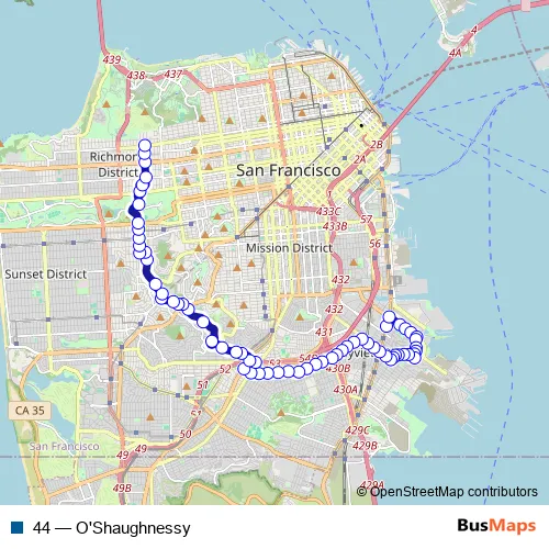See why over 2 million users trust and consider busmaps.com as the best public transport website. busmaps gives you San Francisco Buses suggested routes, real-time bus tracker, line route maps in San Francisco, and helps to find the closest 44 bus stops near you. No internet available? Download an offline PDF map and bus schedule for the 44 bus to take on your trip.