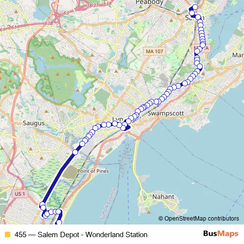 Bus 455 - Salem Depot - Wonderland Station: Full Schedule in Boston