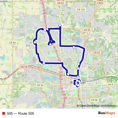 See why over 2 million users trust and consider busmaps.com as the best public transport website. busmaps gives you Rochester Buses suggested routes, real-time bus tracker, line route maps in Rochester, and helps to find the closest 505 bus stops near you. No internet available? Download an offline PDF map and bus schedule for the 505 bus to take on your trip.