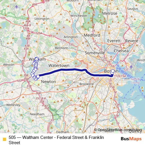 Click here to view the nearest 505 - Waltham Center - Federal Street & Franklin Street bus stop.