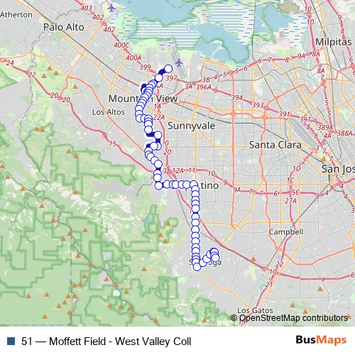 Click here to view the nearest 51 - Moffett Field - West Valley Coll bus stop.