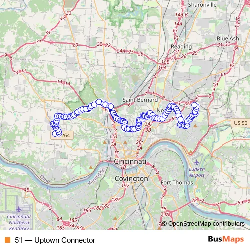Bus 51 - Uptown Connector in Cincinnati: Stops & Timetable